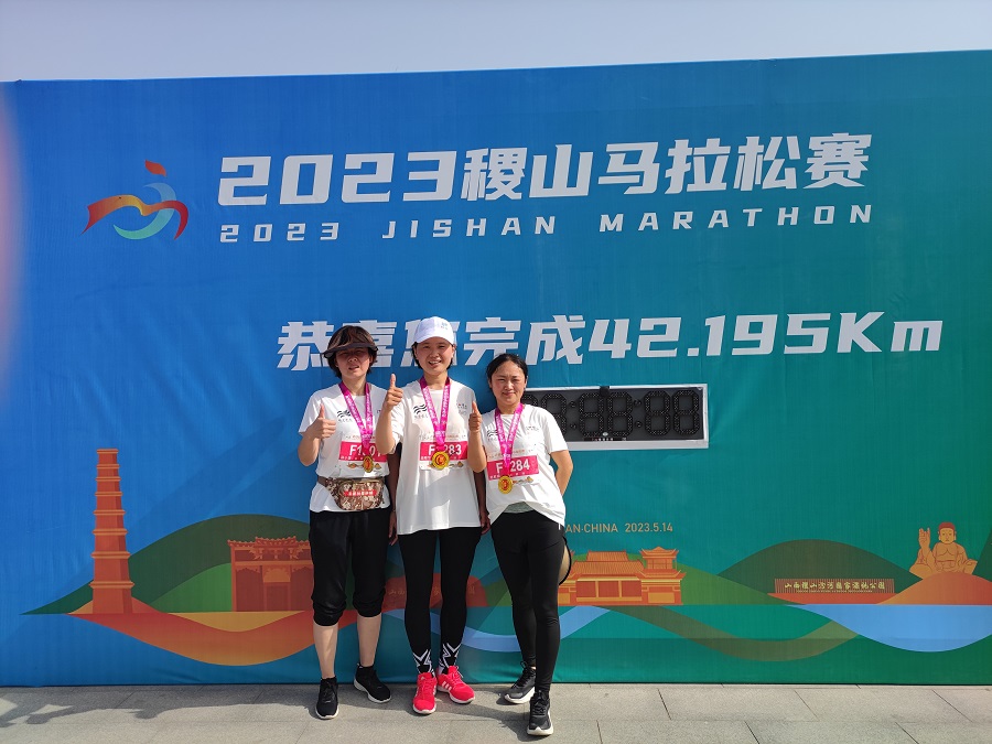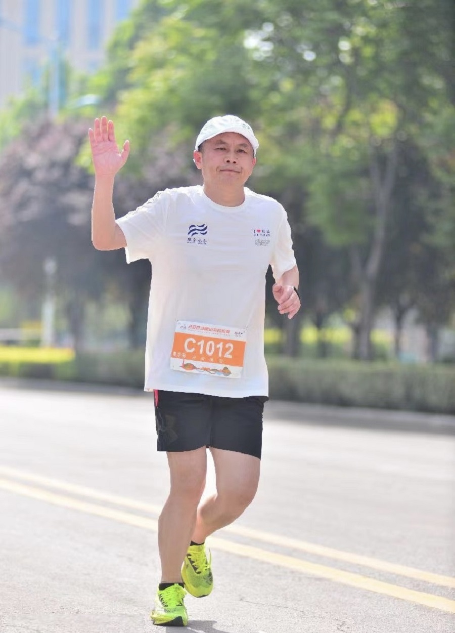 受邀參賽的山西區(qū)域和三門峽的領(lǐng)導(dǎo)同事們欣然應(yīng)約,組成團隊參加了本次21.0975公里半程馬拉松和5公里歡樂跑。他們?nèi)橥度耄瑘猿植恍福赃\動健兒的身份在賽道上展現(xiàn)出活力四溢的風(fēng)采,彰顯了當(dāng)代水務(wù)人朝氣蓬勃、拼搏向前的精神面貌。他們不畏困難,克服挑戰(zhàn),頑強地奔跑著,一路上生命與激情交織,呈現(xiàn)出耀眼的光芒。他們完賽并獲得了獎牌,特別值得一提的是山西區(qū)域總經(jīng)理夏學(xué)春在半程馬拉松中取得了出色的成績,僅用1小時48分鐘完成比賽。 “跑步不僅讓人身體健康,更使我們內(nèi)心平靜,利用跑步的時間來放空自己或者思考問題,面對繁重的工作時,可以更從容面對,在考驗選手的體能、心理素質(zhì)的同時在奔跑中磨煉我們的堅毅品格和拼搏精神。”面對采訪,夏總激動地這樣說道。