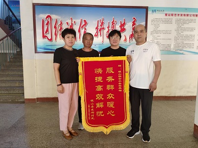 8月17日,稷山縣東街村用戶來到稷山聯合水務,將一面寫有“服務群眾暖心 快捷高效解憂”的錦旗送到公司客服部負責人手中,衷心地感謝公司對其提供的優質的服務。