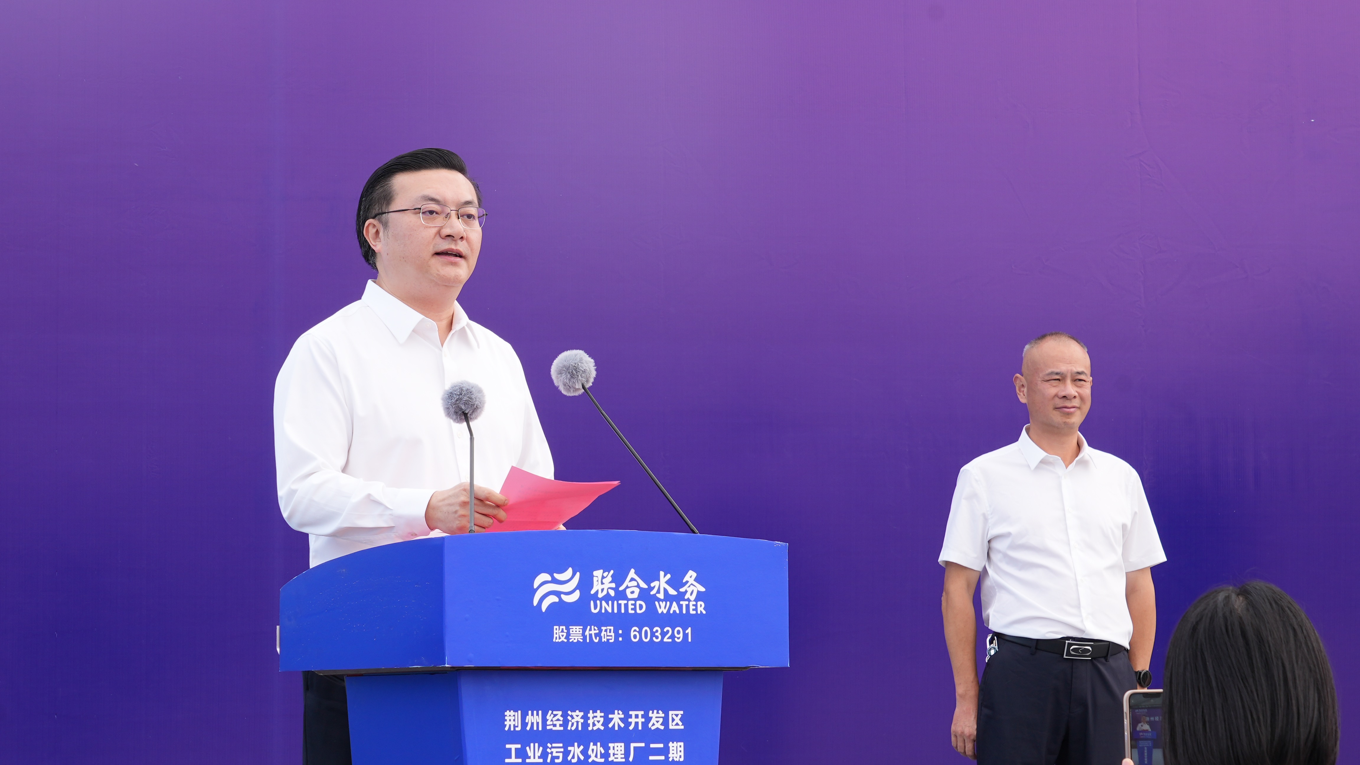 隨后,聯(lián)合水務(wù)常務(wù)副總裁劉猛代表聯(lián)合水務(wù)集團(tuán),對前來參加運行儀式的各位領(lǐng)導(dǎo)和來賓表示熱烈的歡迎和衷心的感謝。劉猛表示,此次項目的正式運行,將為荊州經(jīng)開區(qū)及沙市區(qū)工業(yè)企業(yè)提供更加穩(wěn)定、更加優(yōu)質(zhì)的工業(yè)污水集中處理服務(wù)。從今天起,聯(lián)合水務(wù)將繼續(xù)秉持“為保護(hù)社會環(huán)境提供潔凈的水處理服務(wù)”的初心使命,不斷提升管理水平和服務(wù)質(zhì)量,為荊州經(jīng)濟(jì)社會發(fā)展做出更大貢獻(xiàn)。