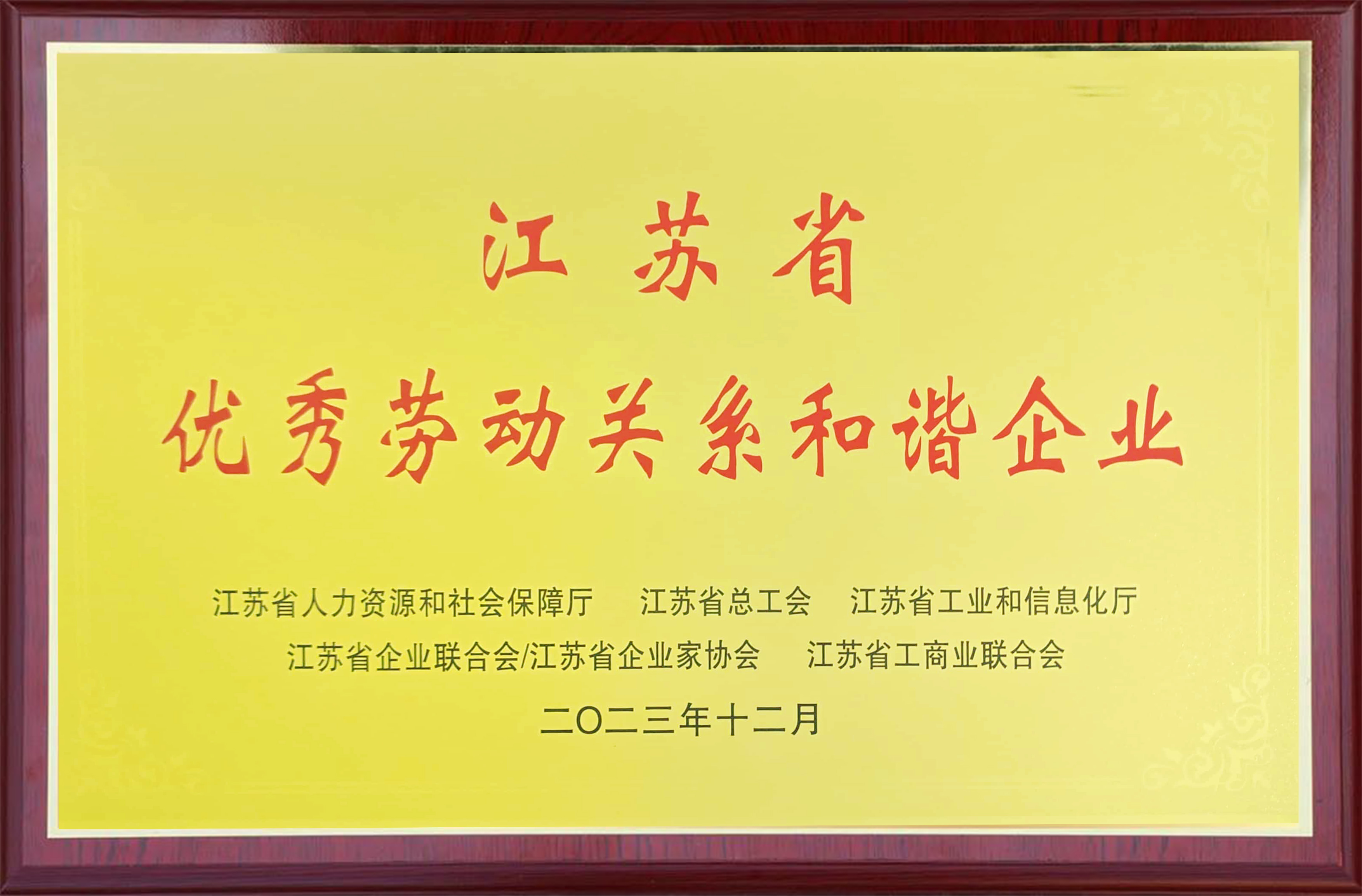 2023年,江蘇聯合水務科技股份有限公司扎實推進新時代和諧勞動關系創建工作,經江蘇省人力資源和社會保障廳、省總工會、省工業和信息化廳、省企業聯合會/企業家協會、省工商業聯合會共同評審,江蘇聯合水務科技股份有限公司成功獲評“江蘇省優秀勞動關系和諧企業”。獲些殊榮,標志著聯合水務在勞動關系管理、促進高質量就業以及履行社會責任等方面成效顯著。