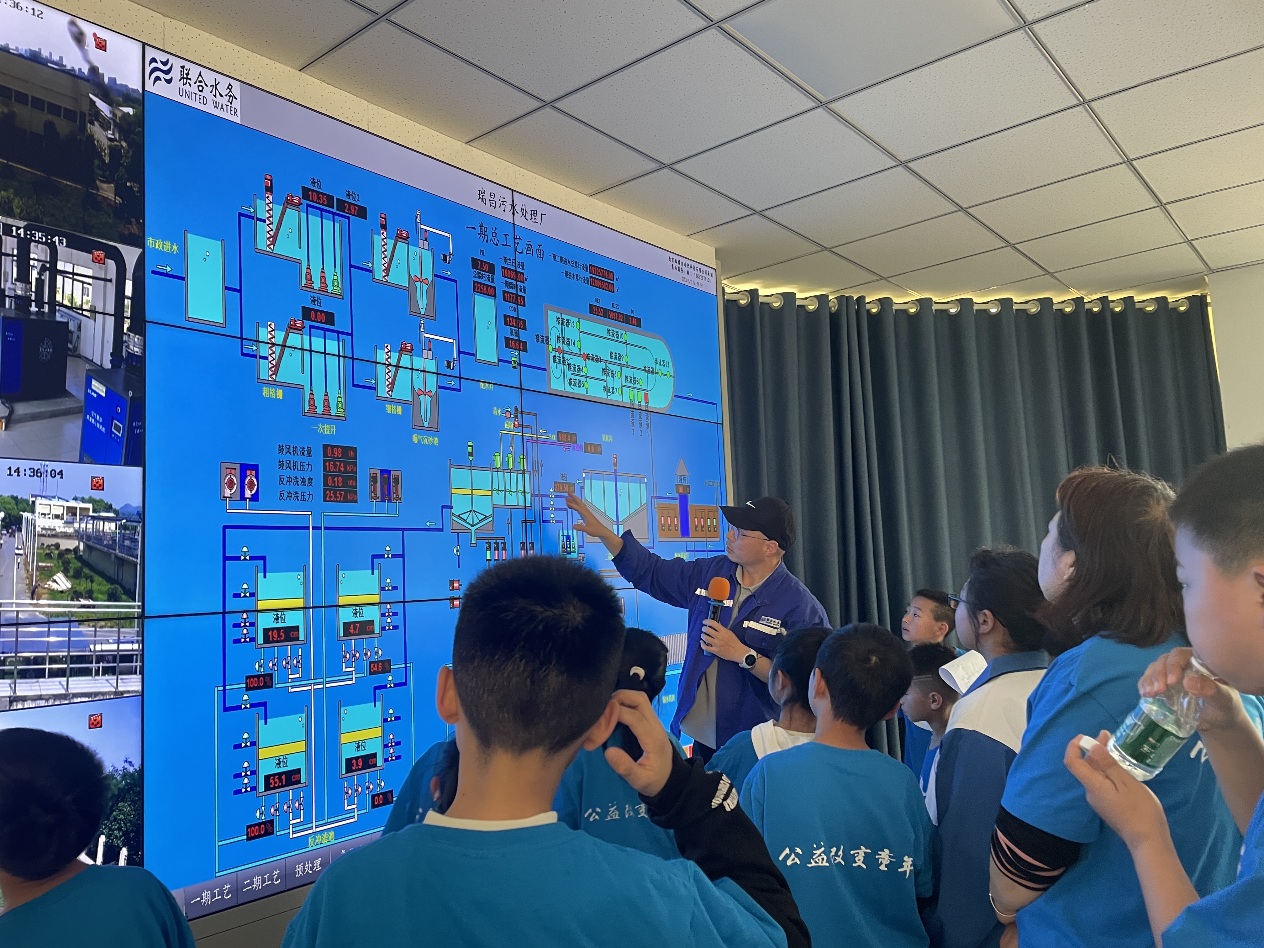 瑞昌聯合水務有限公司作為江蘇聯合水務股份有限公司的全資子公司,自2009年起一直致力于瑞昌城市污水處理業務。經過近15年的發展,公司的污水出水排放標準已從一級B提升至一級A,日處理量也從2.5萬噸增加至5萬噸。在活動現場,瑞昌聯合水務有限公司的總經理助理王定國和廠長梅琳分別為參與活動的孩子們和家長詳細介紹了污水處理的全流程。他們從粗格柵、細格柵到調節池、消毒池等各個環節入手,生動展示了污水處理過程中科學與技術的魅力。在王總的帶領下,大家親眼目睹了污水由渾濁變為清澈的神奇過程。雖然這些經過處理的“清水”尚不能直接飲用,但已足夠清潔,可用于澆樹澆花、養魚以及城市、公園噴泉等景觀用水,為節約用水做出了積極貢獻。