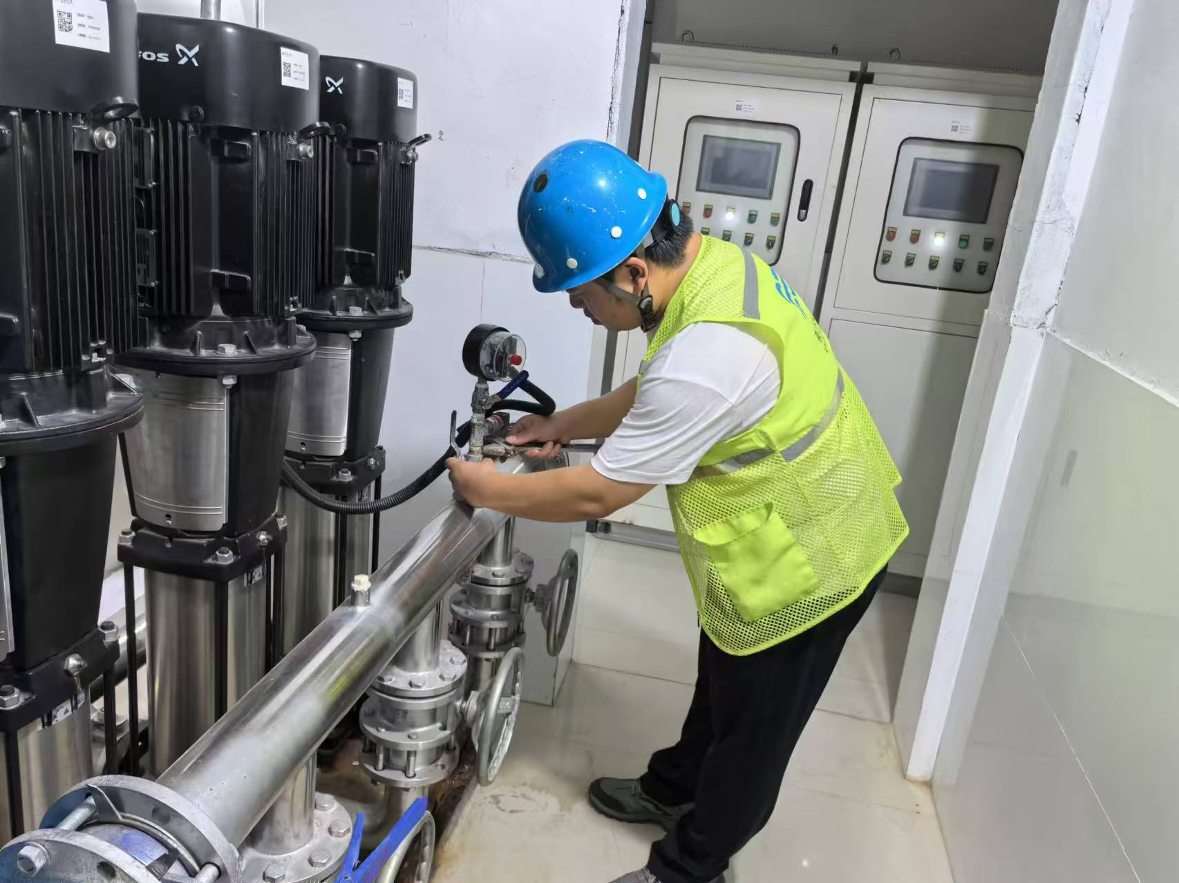 以凝聚“聯(lián)合”力量“穿針”,于滿足城市供水需求處“引線”,江蘇聯(lián)合水務(wù)科技股份有限公司保障供水安全的“針腳”越織越密。在一次次高峰供水無虞的背后,是跨部門合作、全舉措保障的共同作用結(jié)果。 多部門聯(lián)動(dòng),解決“二次供水”低壓問題 高層出現(xiàn)水壓低的原因可能蟄伏于二次供水系統(tǒng)中的每一個(gè)角落,可謂是棘手問題。近日,紫金名門小區(qū)有兩棟用戶反映水壓小,管網(wǎng)人員聯(lián)合二次供水巡檢員進(jìn)行多次排查無果后,隨即請示機(jī)電設(shè)備部支援,經(jīng)過三部門聯(lián)合排查,最終將“病因”鎖定在廢棄增壓泵房內(nèi),此次排查充滿波折,但各部門協(xié)同讓難題迎刃而解。