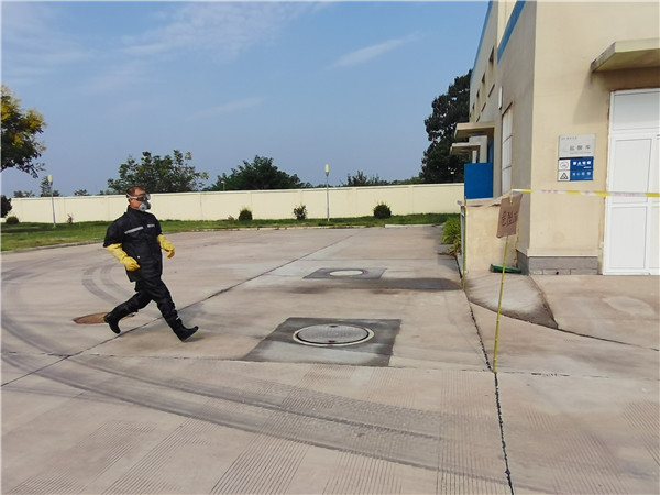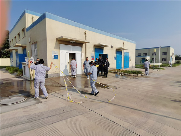 “鹽酸間外側(cè)儲液罐管道漏液,鹽酸正在泄漏,情況十分緊急,請立即來現(xiàn)場處置!” 9月10日9時10分,隨著值班電話鈴聲的急促響起,一場鹽酸泄漏應(yīng)急演練在三門峽聯(lián)合水務(wù)有限公司緊急展開。演練涉及制水部、水質(zhì)檢測中心、人事行政部等多個部門,公司全員參加了演練和觀摩。 本次演練以“消除安全隱患,筑牢安全防線”為主題,演練開始前,全員學(xué)習(xí)了廠內(nèi)危化品的特性、預(yù)防和急救、泄露等處置措施,并現(xiàn)場示范了正確使用與佩戴安全防護(hù)用品的方法。險情突發(fā),應(yīng)急指揮部立即啟動應(yīng)急預(yù)案,各小組快速進(jìn)入應(yīng)急部署,穿戴防護(hù)用品進(jìn)行現(xiàn)場搶險救援,工作人員撤離至安全區(qū)域。經(jīng)過搶險,泄露點成功堵漏,鹽酸泄漏得到控制,未對環(huán)境和生產(chǎn)造成影響。