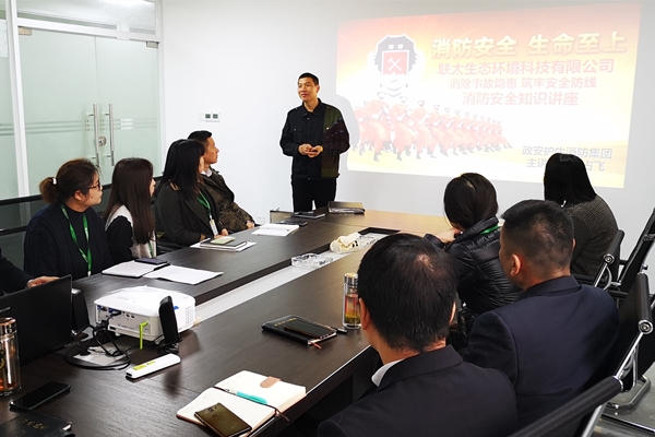 為進一步提升全體員工的消防安全意識,10月20日上午,咸寧市聯太生態環境科技有限公司在二樓會議室,舉辦了以“消防安全,生命至上”為主題的消防安全培訓。培訓課上,政安消防集團培訓老師從“消防知識、消防意識、消防工具”三要素對員工做了深入淺出的講解。
