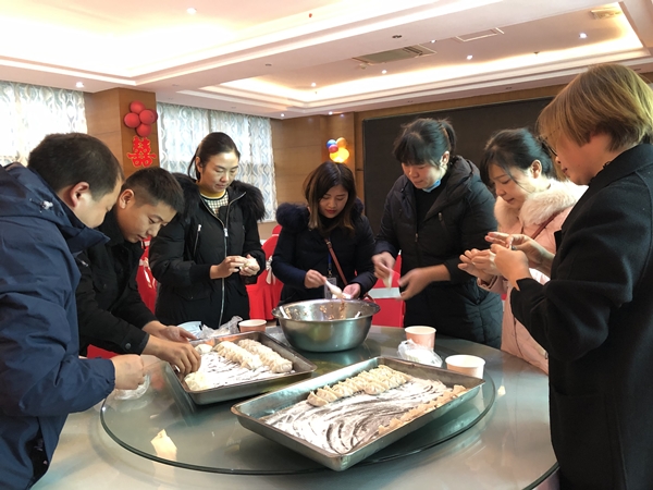 圖/ 座談會(huì)后的合影 在感恩節(jié)座談會(huì)活動(dòng)的最后,公司人力資源部經(jīng)理陳紅為員工代表頒發(fā)感恩賀卡和感恩節(jié)小禮品,以期廣大員工在工作上繼續(xù)保持良好的心態(tài),不斷學(xué)習(xí),與時(shí)俱進(jìn)。 為進(jìn)一步回饋公司員工的辛勤付出,公司組織了感恩節(jié)包餃子活動(dòng)。大家興致高昂,洗菜、切菜、和面、搟皮等一套動(dòng)作下來(lái),不一會(huì)兒,一個(gè)個(gè)圓鼓鼓的餃子整齊地排列開來(lái)。晚餐時(shí),鮮香的餃子從滾滾的熱水中出鍋,品嘗著自己親手包的餃子,大家的喜悅之情溢于言表。