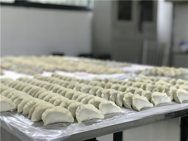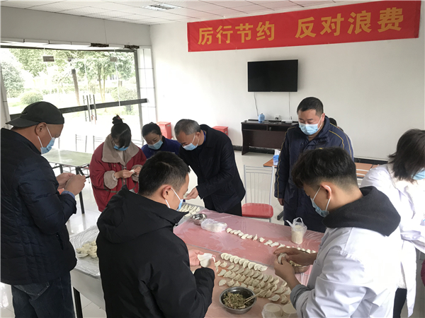 大家在“厲行節(jié)約、反對(duì)浪費(fèi)”的大紅橫幅印照下,你追我趕、相互促進(jìn),充分發(fā)揚(yáng)了聯(lián)合水務(wù)“團(tuán)結(jié)”就是力量的企業(yè)文化精神,體現(xiàn)了人多效率高、人心齊泰山移的特點(diǎn)。不到一個(gè)小時(shí),一個(gè)個(gè)有棱有形、元寶模樣的餃子,一排排、一行行,錯(cuò)落有致、排列整齊地出現(xiàn)在我們眼前,就像一個(gè)個(gè)紀(jì)律嚴(yán)明、軍容赫赫的士兵即將奔赴戰(zhàn)場(chǎng),大家彼此相視露出勝利般的欣慰笑容。