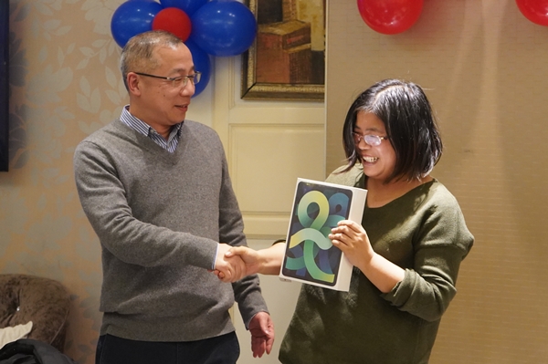 總裁俞偉景發(fā)表活動致辭 “鴻運當頭”的驚喜抽獎把整個活動推向高潮。在每一個大獎開獎之前,大家都屏神凝氣,熱血沸騰;開獎后,中獎的同事為鴻運歡呼雀躍,其他同事也熱烈鼓掌祝賀,為活動增添了無數(shù)歡聲笑語。在活動即將落幕的時候,俞總帶領(lǐng)大家共同唱響生日歌,為近期慶生的同事舉辦生日會,并為壽星們送上書籍。生日會傾注了集團對每一位員工的關(guān)懷與愛護,F(xiàn)場活躍的氣氛極大的調(diào)動了每一位員工的企業(yè)融入感,在寒冬里溫暖了大家的心房。