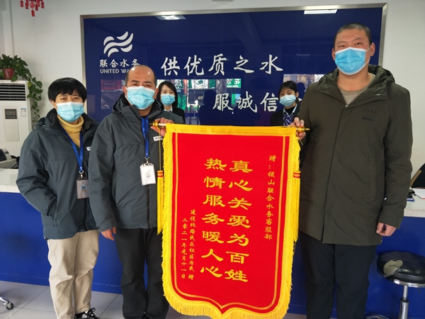 1月18日,稷山聯合水務有限公司營業大廳收到了建設北路用戶送來一面寫有“真心關愛為百姓,熱情服務暖人心”的錦旗,這簡短的幾個字,表達了用戶對稷山公司濃濃的謝意。