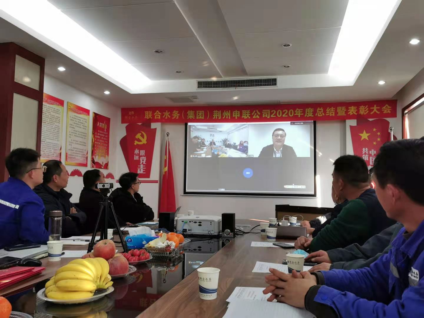“玉鼠載譽(yù)辭舊歲,金牛報喜迎新春”。2月5日,荊州申聯(lián)公司召開以“共克時艱、開創(chuàng)未來”為主題的2020年工作總結(jié)暨表彰大會,會議全面回顧2020年主要工作,分析不足,總結(jié)經(jīng)驗(yàn),安排部署2021年目標(biāo)任務(wù)。聯(lián)合水務(wù)集團(tuán)董事兼高級副總裁劉猛以及荊州申聯(lián)公司主管級以上人員、先進(jìn)員工、員工代表共計(jì)26人參加了會議,會議由人事行政副總經(jīng)理劉斌主持。為加強(qiáng)疫情防控工作,會議采取“現(xiàn)場+視頻直播”的方式進(jìn)行。