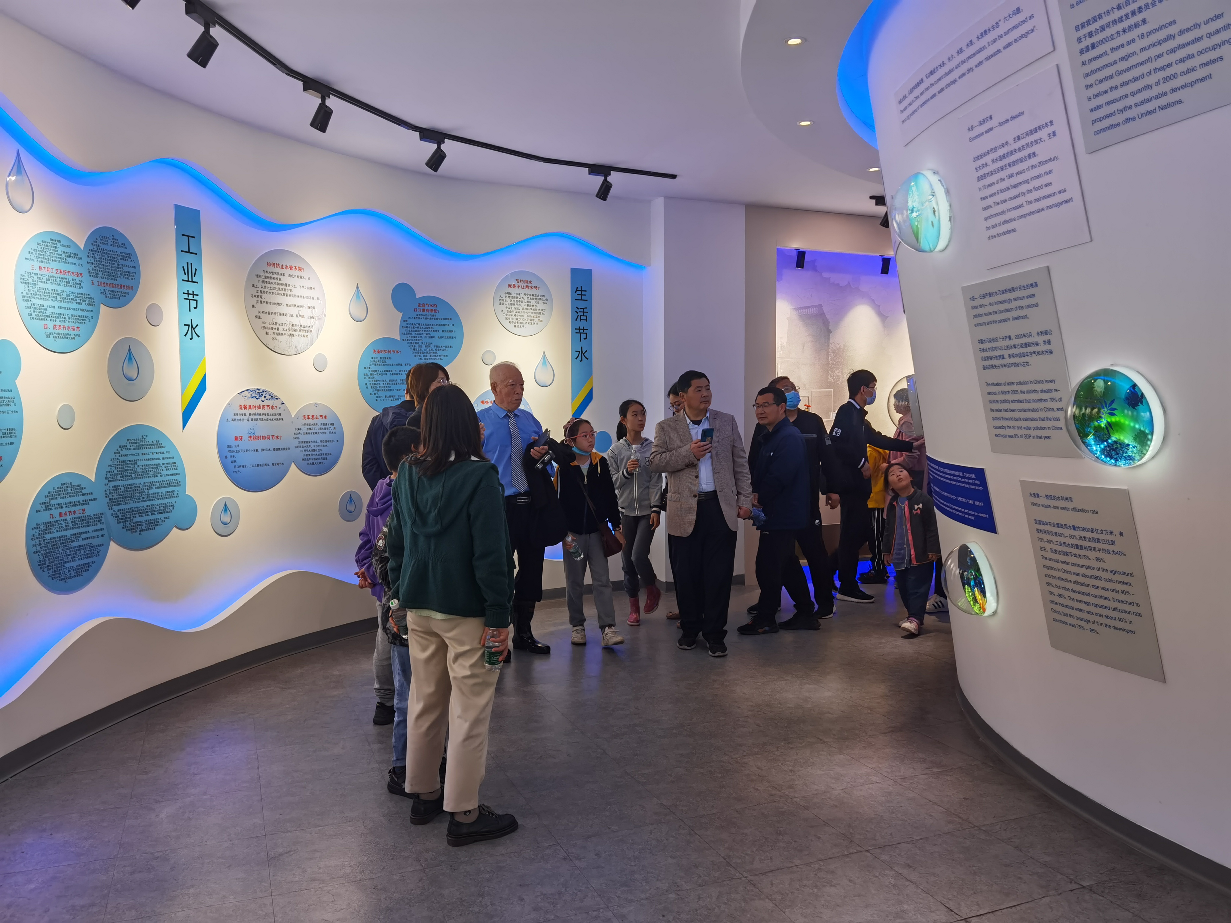 圖:參觀河湖連通泵站送水泵房 接下來,大家來到聯合水務宿遷供水公司二水廠,參觀制水工藝流程、水檢中心、調度中心,現場感受一滴水的制作工藝流程、了解水質檢測控制及自來水的調度情況。 參觀完取水、制水、水質檢測、送水調度等,大家帶著對自來水的一定認識,走進了位于公司二水廠、由聯合水務集團全資打造的宿遷市水文化展示館。從論水展區的無源之水、萬源之源、水脈里程等展項到制水展區、節水展區,大家通過聲、光、電、影等手段多維度地了解宿遷市的自來水和水文化,對宿遷市供水事業的發展、水文化和節水理念有了更為深入的認識和深刻的記憶。孩子們紛紛在留言墻留言,表示要積極參與到節水行動中來。