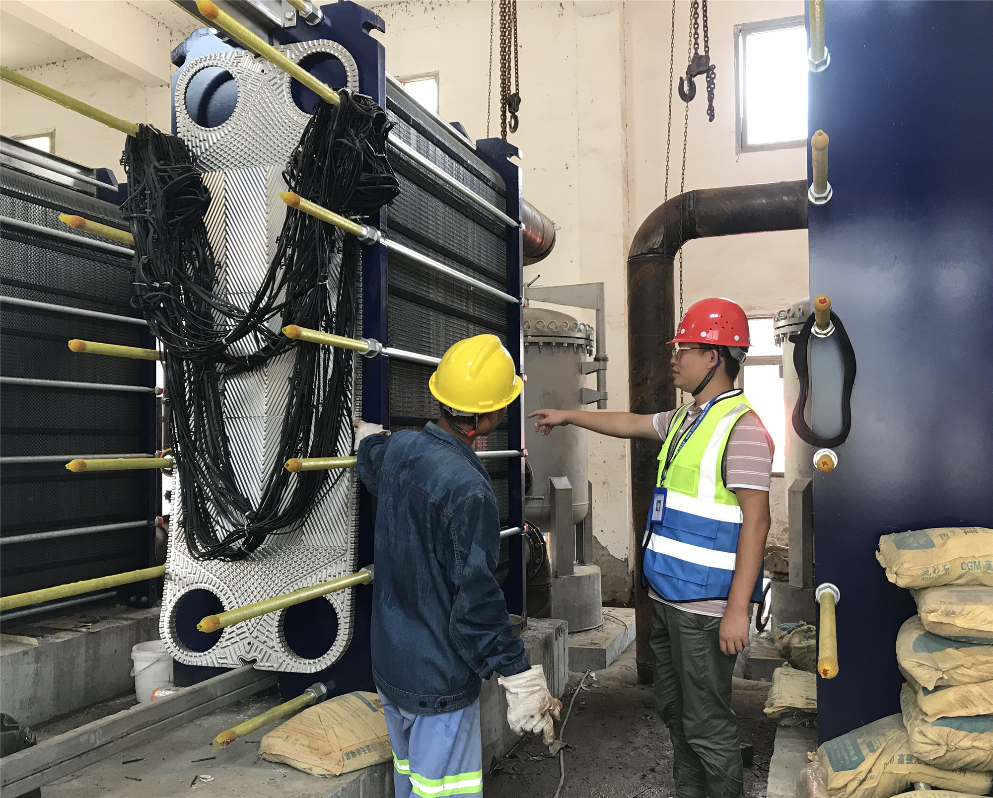 盛夏時節,暑氣熏蒸,烈日杲杲,離開空調,就有酷熱窒息之感。 因印染工藝含煮煉、蒸化等高溫蒸煮環節導致進入污水管網的印染污水水溫高達60℃,而印染污水為荊州公司工業污水的主要污水水源,低溫天氣下,對系統沖擊較小,但在酷暑季節,對污水廠來說無疑是一個極大的挑戰。面對高溫污水處理壓力與挑戰,荊州申聯公司盡銳出戰,不忘治污初心,誓奪高溫治污攻堅戰勝利,確保夏季高溫安全生產,出水達標排放。 防患未然 積極備戰 為保證高溫天氣下,污水處理系統能安全穩定運行,項目部開足馬力,全面加速推進工業污水換熱器降溫改造工程,該工程從5月份開始籌備,目前已完成總工程量的95%,預計7月底全部完工。該工程完工后,將高溫工業污水從集水池引入換熱器中通過傳熱板片實現冷熱水的熱量傳遞,預計可將工業污水降溫至30℃左右再回流至集水池中,使得進入生化段的污水溫度適宜,減小對系統的沖擊。