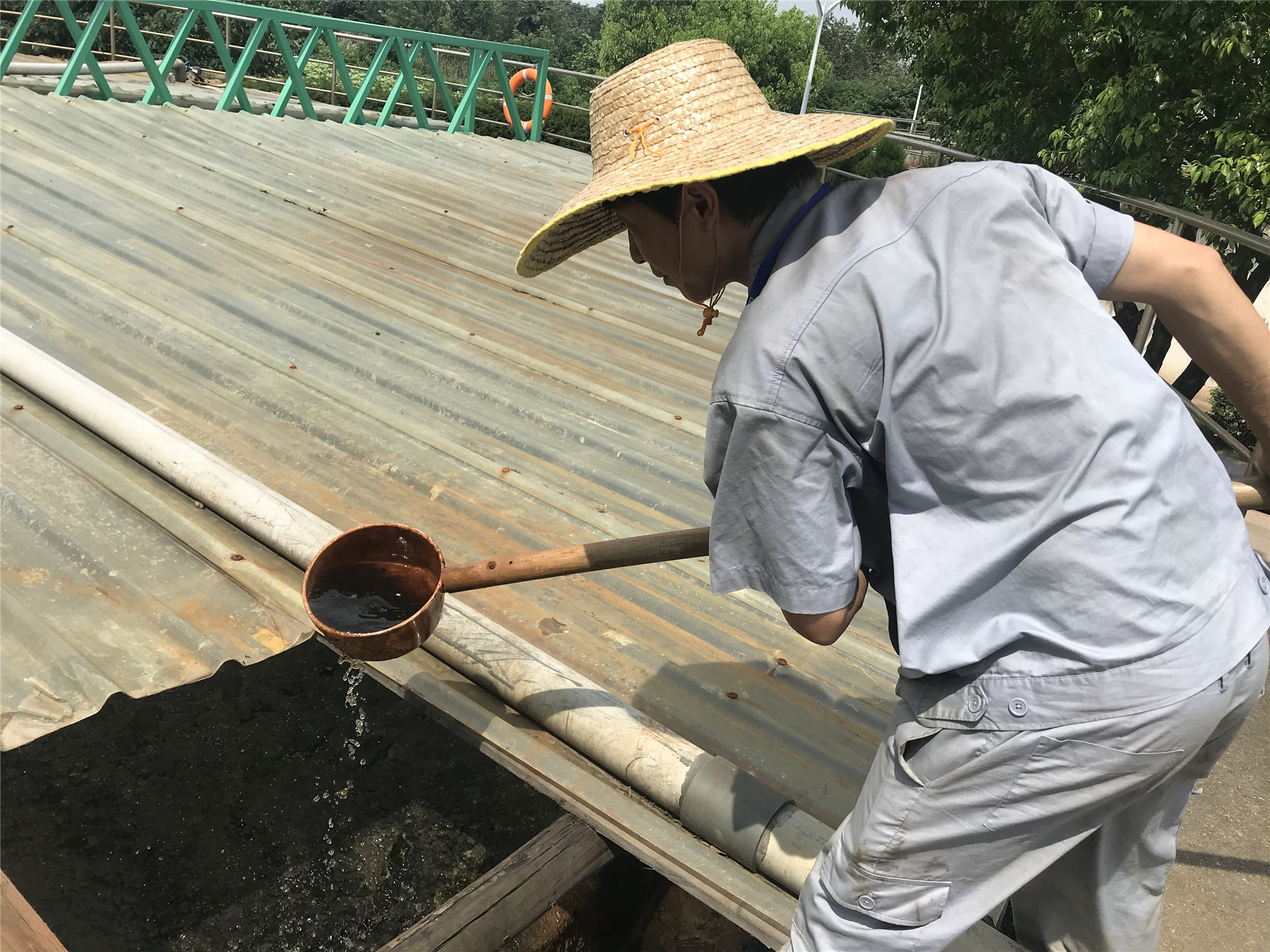 圖:管網管理員維保閥門 二號終沉池旁,機電員熟練運用各類維修工具搶修排泥泵,拆解電機、保養軸承、更換泵體損壞零部件、安裝調試等動作一氣呵成,只為確保排泥泵能盡快投入運行。盡管汗水在臉上肆意流淌,衣服汗濕無數次,盡管廠區改造期間,道路多處挖斷,所有維修設備必須人工搬運,但機電員毫無畏懼,克服高溫酷暑和人工搬運的雙重考驗,迎難而上,還笑稱“這都不算事。” 為保證酷暑時節系統正常運行,生產部做到了每小時巡檢,污水溫度、性狀,污泥濃縮情況,風機曝氣量,溶解氧濃度等都是他們的必查項。盡管烈日炎炎、大地如烤,汗水掛滿臉龐,皮膚曬得黝黑,他們仍無懼無畏,以拔丁抽楔的態度,直面難題,保證了生產安全穩定運行,出水100%達標排放。