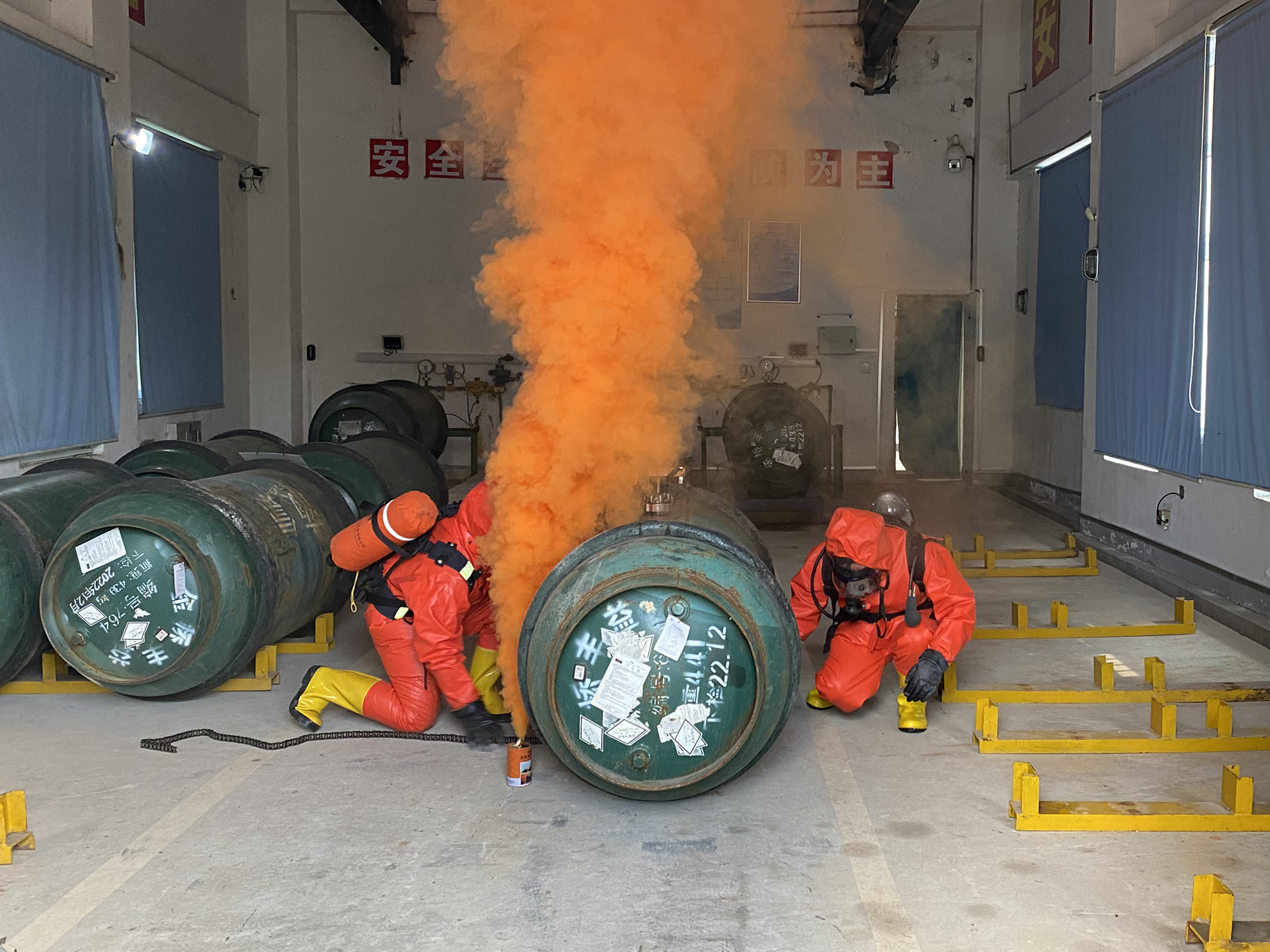 圖:現場處置組對鋼瓶進行堵漏