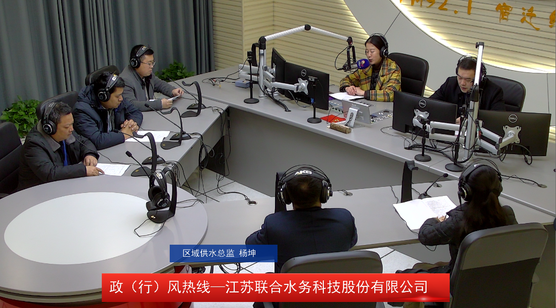 傾聽百姓心聲,切實為民解憂。近日,江蘇聯(lián)合水務(wù)科技股份有限公司宿遷供水公司區(qū)域供水總監(jiān)楊坤帶領(lǐng)水質(zhì)檢測中心、管網(wǎng)部、客戶服務(wù)部、質(zhì)量安全部等相關(guān)負責(zé)人,共同走進宿遷市“政(行)風(fēng)熱線”直播室,就供水方面的熱點問題與廣大用戶進行交流。